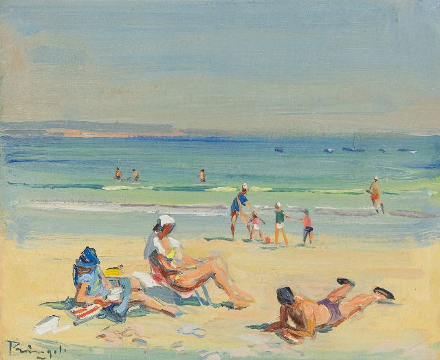 Georg Hambüchen | Strandleven in Katwijk, olieverf op doek, 39,7 x 49,5 cm, gesigneerd r.o. en gedateerd '31