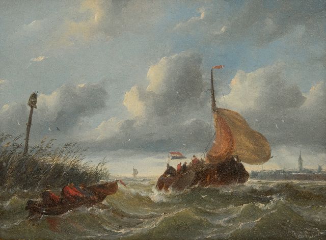 Zeilwedstrijd op de rede van Vlissingen, olieverf op doek60,1 x 100,0 cm, gesigneerd r.o. en gedateerd 1860