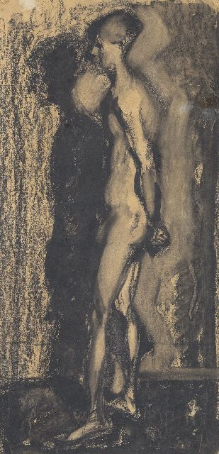 De nieuwste hoedenmode in Brussel, 1908, zwart krijt op papier 13,2 x 10,2 cm, gesigneerd r.o. met initialen en gedateerd 1908