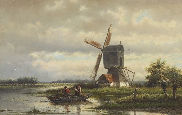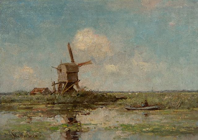 Polderlandschap met hengelaar, olieverf op paneel 20,8 x 23,7 cm, gesigneerd r.o. met initialen