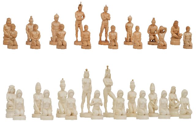 Schaakspelers in een wijnkelder, olieverf op doek 69,0 x 55,8 cm, gesigneerd r.o.