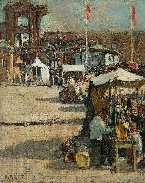 Driesten A.J. van | Aan het werk op het erf, olieverf op doek 52,5 x 76,5 cm, gesigneerd r.o. Driesten A.J. van