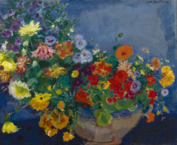 Kleurrijke bloemen, olieverf op doek 60 x 72,9 cm, gesigneerd r.b. en te dateren ca. 1948